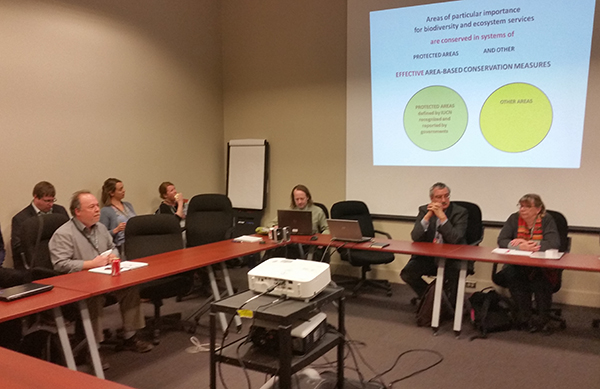 This participation CCEA has provided an opportunity to present our work to the IUCN Working Group on Other Effective Area Based Conservation Measures (OEABCM). The event was chaired by Kathy MacKinnon, World Commission on Protected Areas Chair (IUCN-WCPA) and jointly opened by Dr. Braulio Ferreira de Souza Dias, Executive Secretary of the CBD, and Trevor Sandwith, Director of the World Programme on protected areas (IUCN-GPAP). An overview of the work done to date, the road map of next steps and a presentation by the CCEA on the Canadian experience were the highlights of this event.